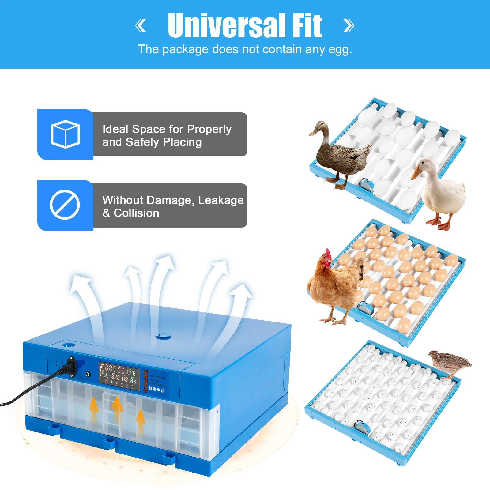 Applicable Quantity: 48PCS Chicken Eggs/32PCS Duck Eggs/24PCS Goose Eggs/72PCS Pigeon Eggs/120PCS Quail Eggs