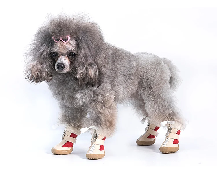 4pcs/set Elastic Winter Pet Dog Shoes Anti-slip Velvet Thickening Warmer Small Comfort Boots