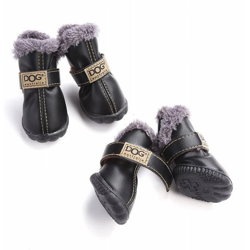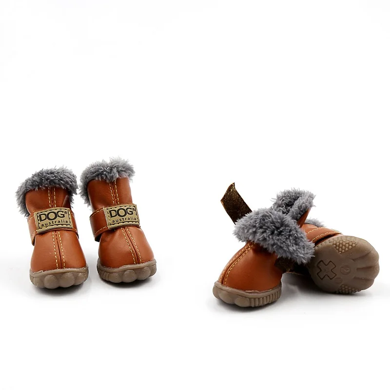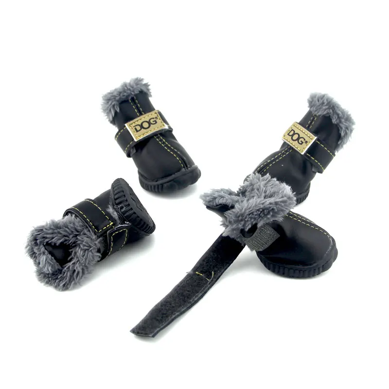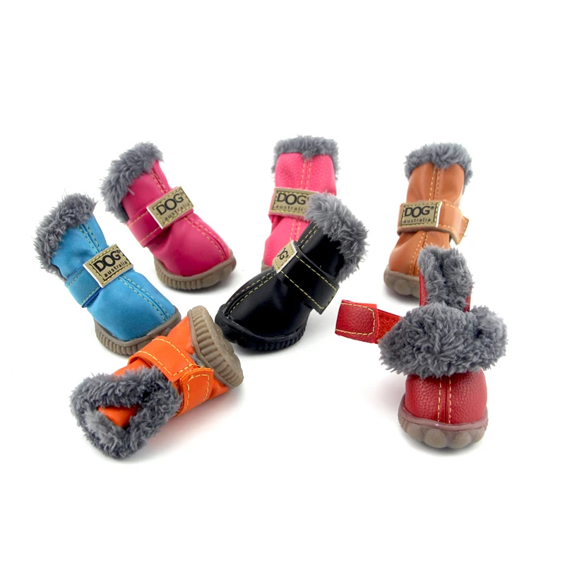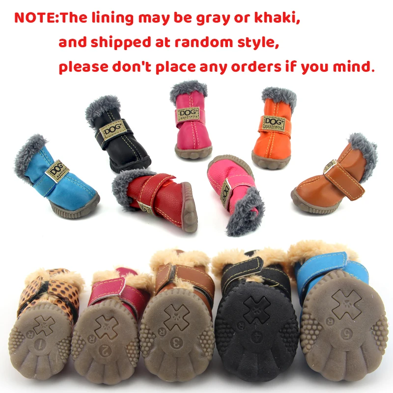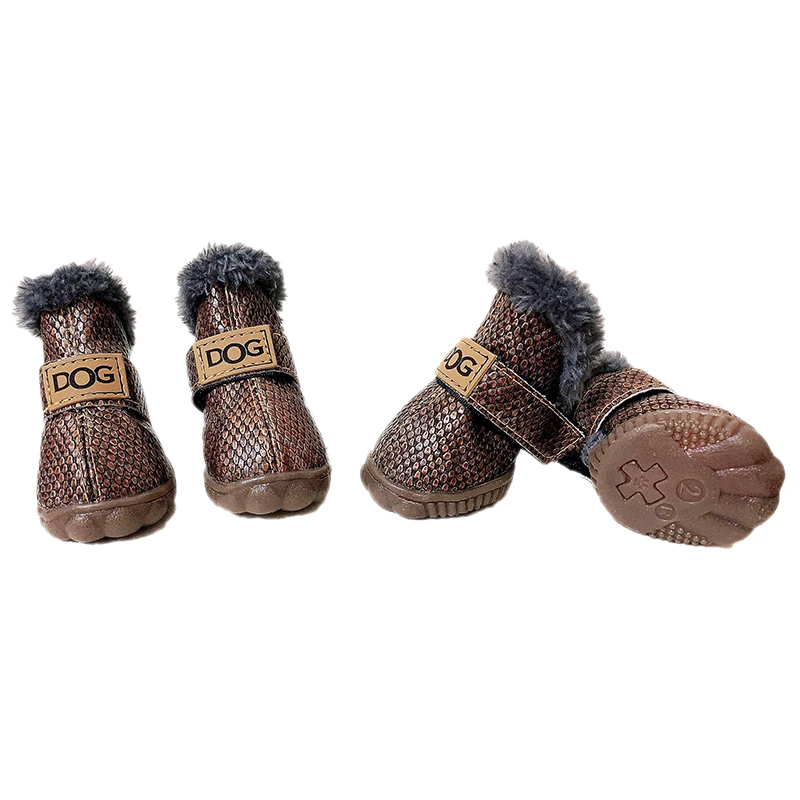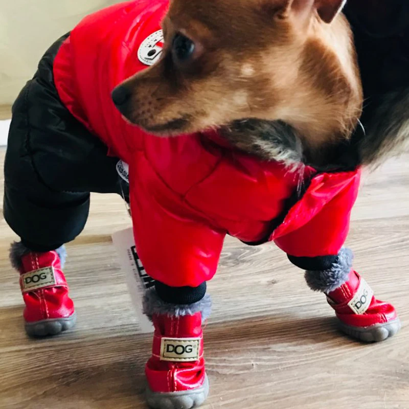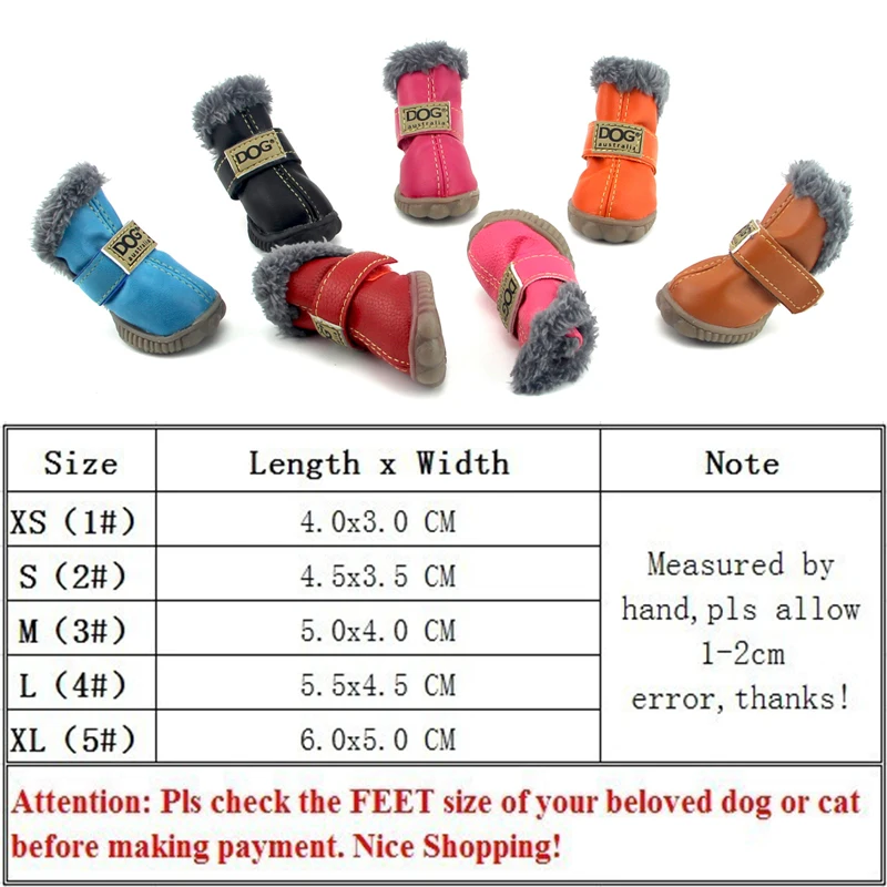 4Pcs/set Winter Pet Shoes Waterproof Thick Warm Leather Dog Shoes Non-slip Snow Boots for Puppy Cat Chihuahua Pug Pet Paw Care
