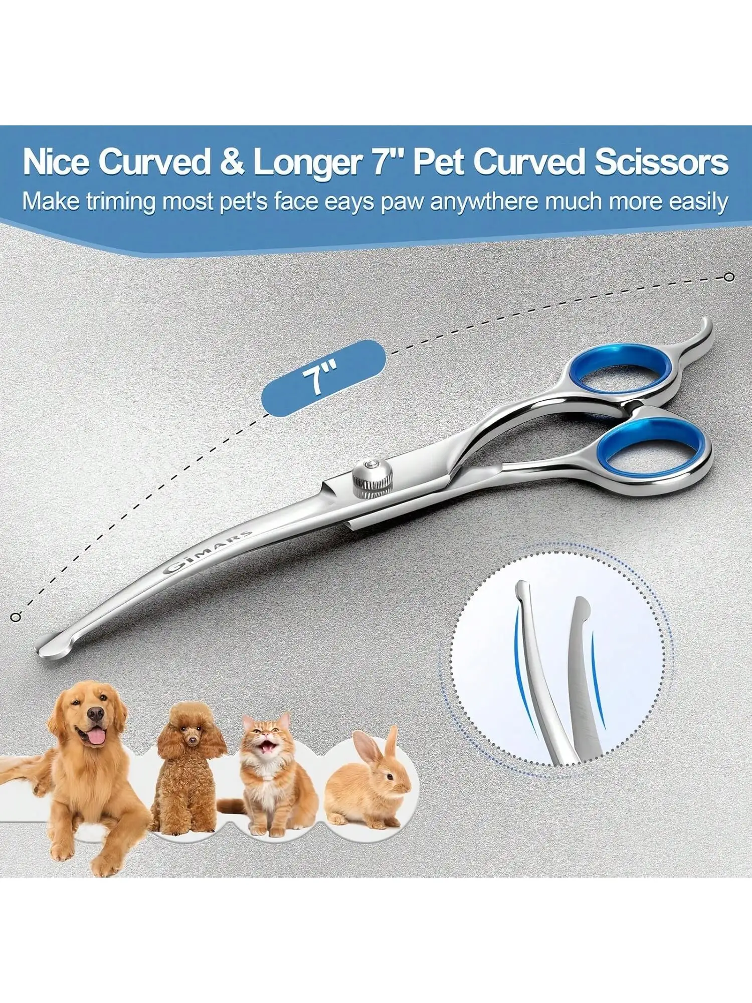 5-piece Professional Pet Beauty Scissors Set. Designed for precision and ease of use, this grooming set is essential for pets, helping you trim, shape, and style your dog or cat safely at home.