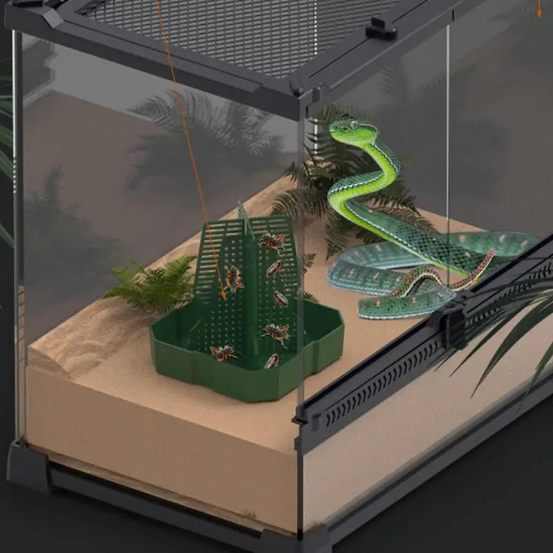 The smooth interior walls ensure insects stay inside, while the sturdy, non-toxic material makes it safe for daily use. Ideal for terrariums and enclosures, this feeder is great for bearded dragons, chameleons, geckos, and other insect-eating reptiles.