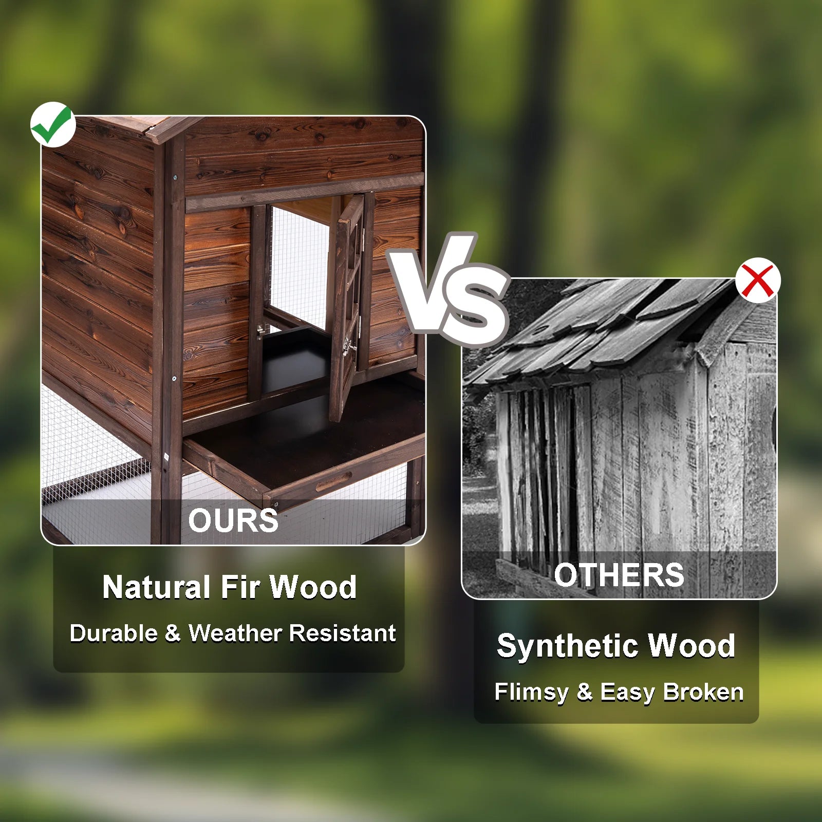 & Weatherproof: Solid rain-resistant fir wood with Environmental