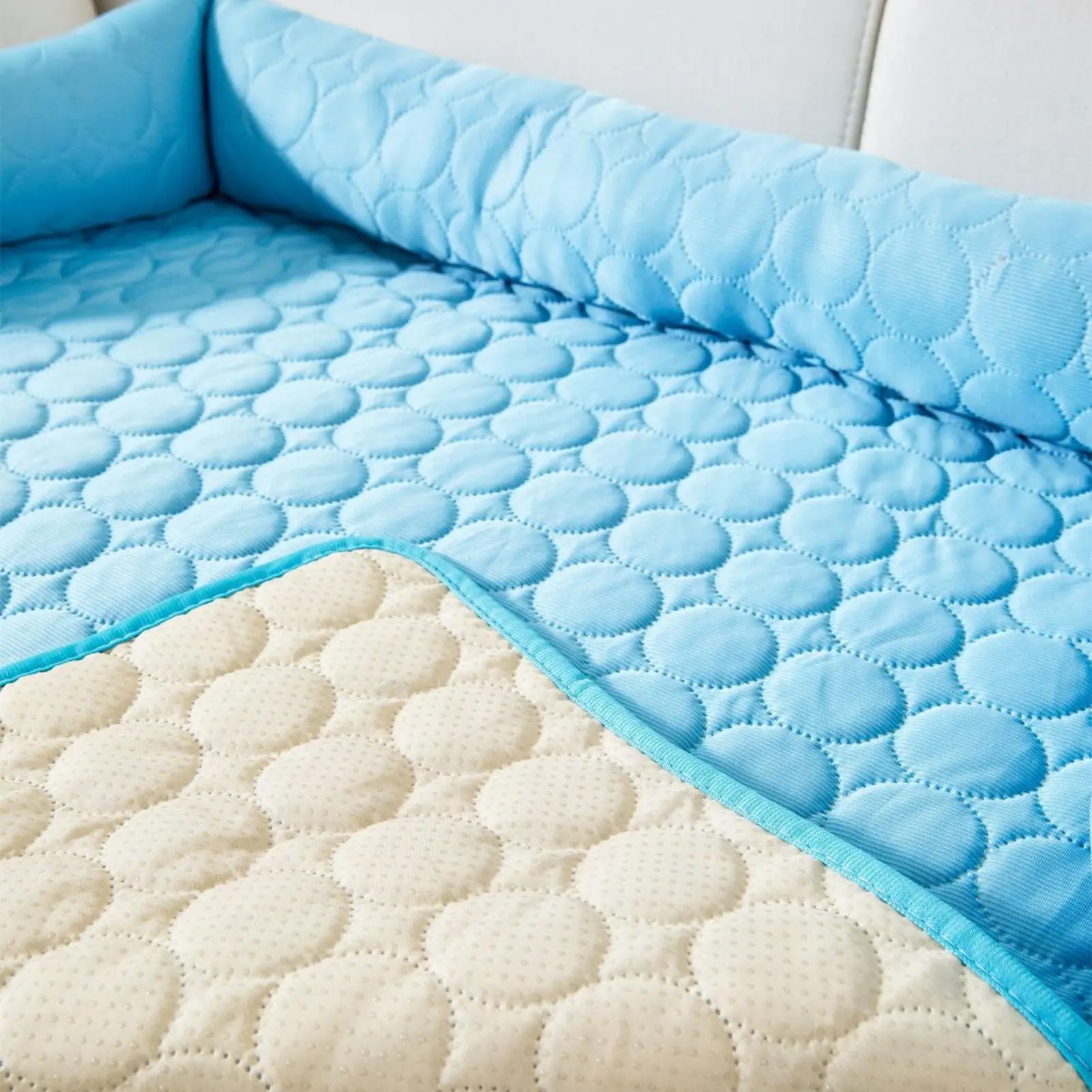 Bullet Points:1.Refreshingly Cool Design: The 3D breathable structure and specially textured fabric ensures optimal ventilation, providing a circulating cooling effect for your pet's comfort during warm days while maintaining durability and ease of cleaning 2.Portable, Multi-Use Design: Delivers effortless organization for a cooling dog bed mat, catering to indoor, outdoor demands, and portable, multi-use needs, without compromising the comfort of your pet's dedicated resting area 3.Sturdy and Dependable Design: Features anti-bite edges, a sturdy scratch-proof build, and densely interwoven material techniques to maximize cooling mat lifespan 4.Non-Slip Stability Layer: Designed with a wave-textured anti-slip base, this cooling dog bed mat resists sliding or shifting, providing dependable stability and consistent performance for everyday relaxation 5.Clean and Easy: Designed for convenience, the detachable surfaces of the dog bed mat allow for quick mark cleaning, promoting a well-maintained and sanitary environment without extra effort Crafted for pets' comfort, the Cooling Dog Bed Mat features a non-slip base that ensures stability while sleeping or resting. Its scratch-resistant and bite-resistant properties enhance durability, making it suitable for puppies and grown dogs. Specifications:Product material: clothProduct weight: about 700gProduct size: about 70x70cm/27.56x27.56 inchesPacking List:1* Cooler Dog Couch MatNote:Due to different lighting and screen settings, the item color may be slightly different from the picture.Due to different manual measurements, please allow a 1-2cm difference in size.