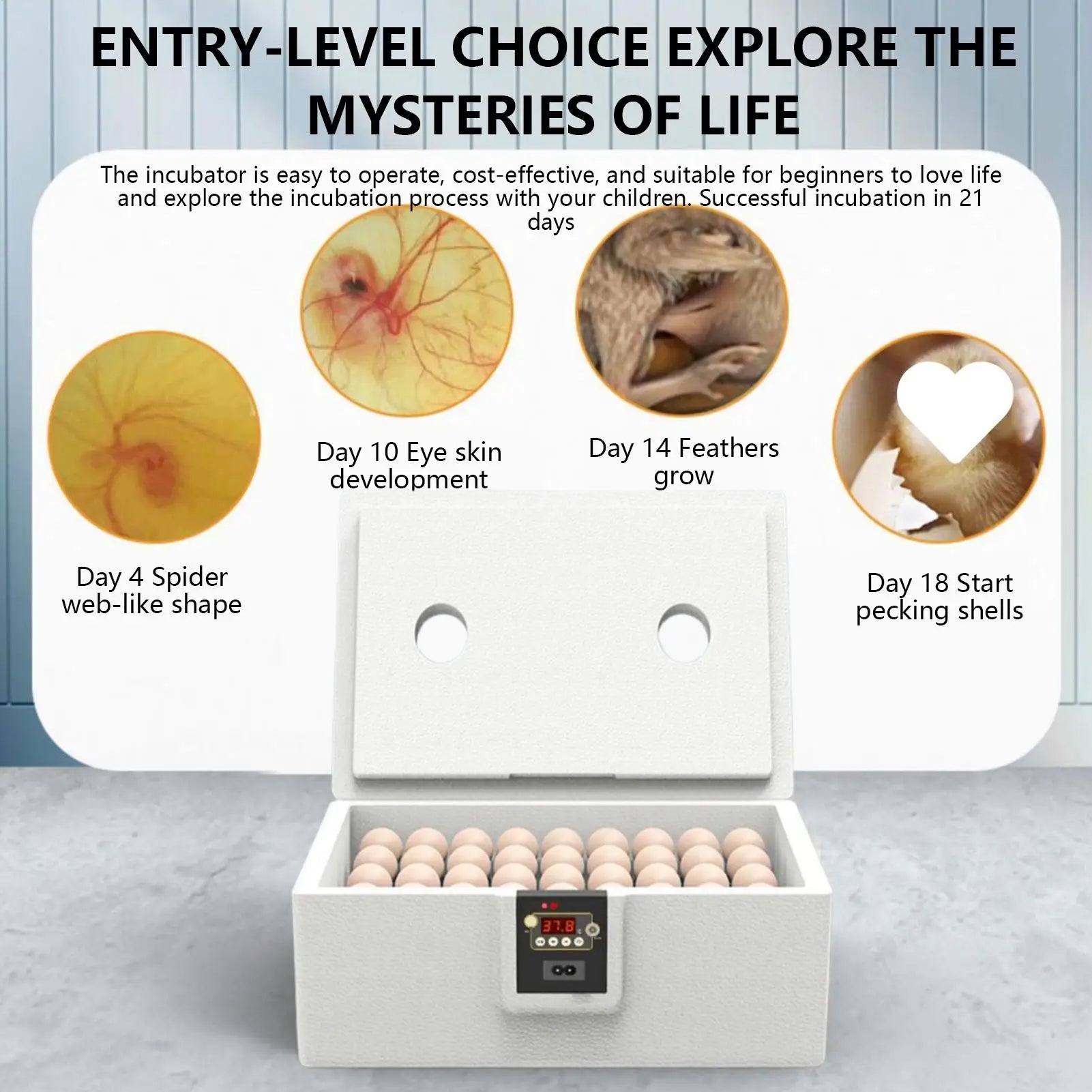 1.Natural Simulation Technology: Experience chick hatching, supported by an innovative system maintaining steady warmth, and replicating natural incubation for improved outcomes