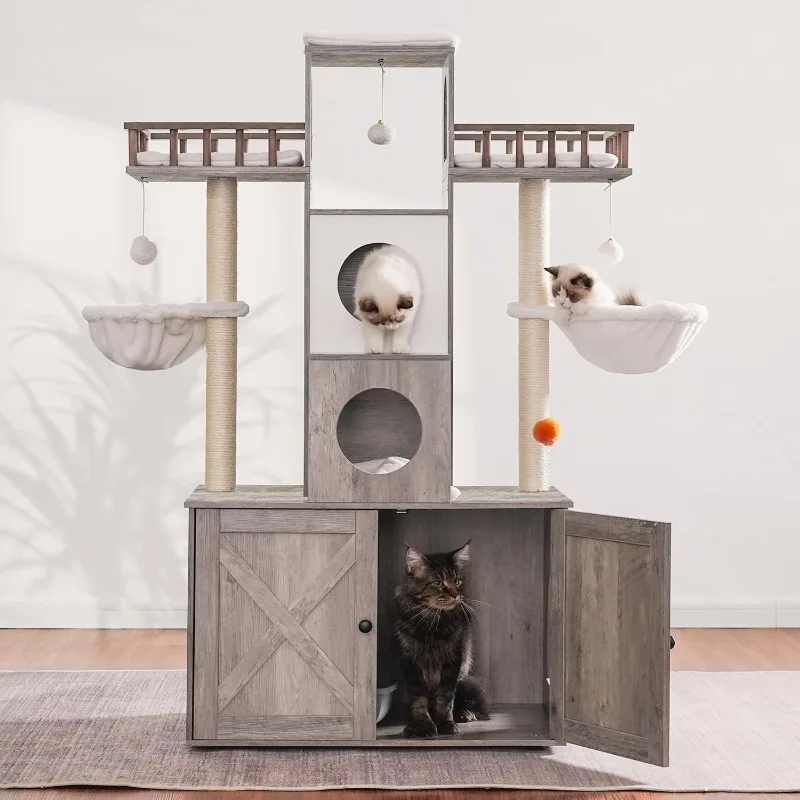🐾 Modern Cat Tree Furniture with Hidden Litter Box – Perfect for Big Cats 🐱✨