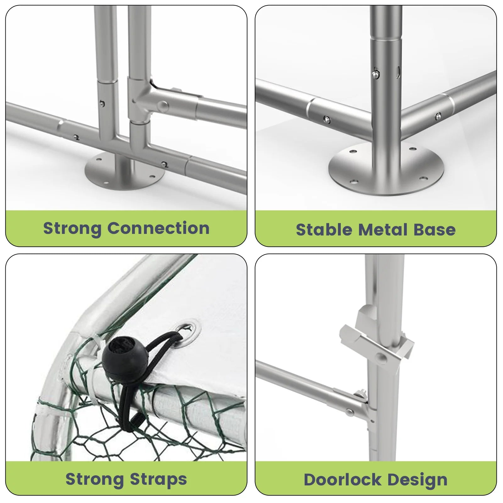 The waterproof cover shields chickens, ducks, and other small animals from rain, sun, and wind, making it perfect for year-round use. Ideal for backyard setups or small farms, this cage provides a secure space for your birds to roam and rest.