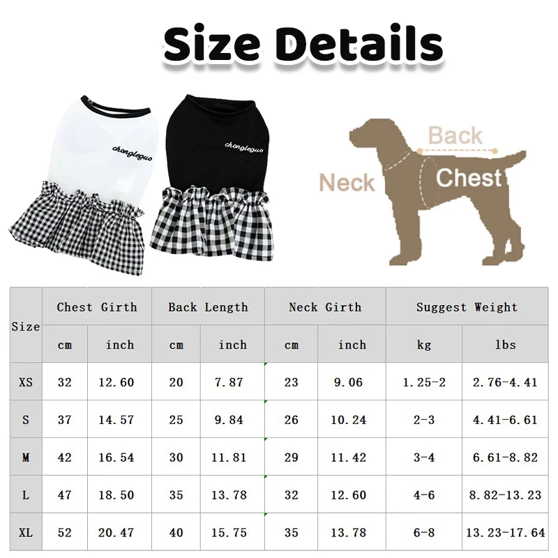 XL: Chest 52cm/20.47" ; Length 40cm/15.75" ; Neck 35cm/13.78" ; Suggest Weight 6-8 kg/13.23-17.64 lbs.